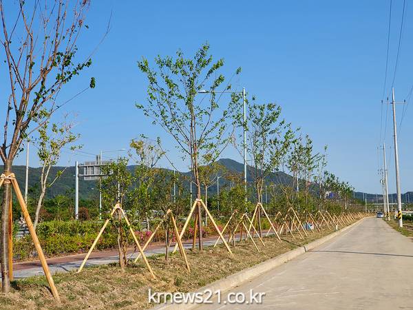 광양시는 광양읍 신덕로 주요도로변에 도시숲과 하천 등 녹지축을 연결하는 신규가로수
