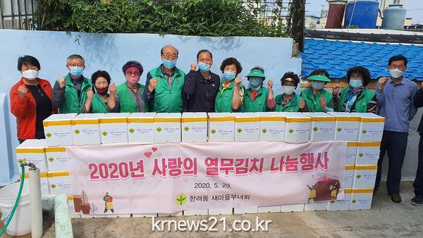 지난 28일 한려동 새마을부녀회(회장 길명숙)가 관내 어려운 이웃들을 위해 사랑의 열무김치 나눔행사를 열었다.