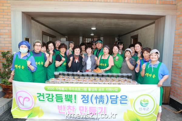 인제군자원봉사센터(센터장 이영자)는 우수프로그램 활성화 공모사업의 일환으로 인제읍의 저소득층과 독거노인 가구에 밑반찬을 만들어 각 가정을 방문하여 전달하고, 말벗 및 안부 묻기로 소외계층을 살펴볼 수 있는 계기 마련을 위한‘건강 듬뿍! 정(情)담은 반찬 만들기’사업을 추진하고 있다.