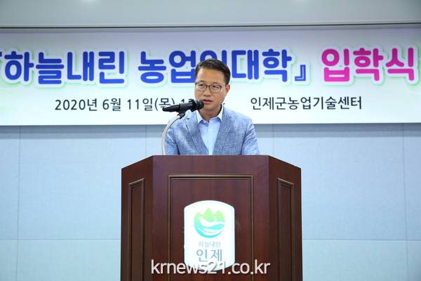 인제군이 그동안 코로나19로 연기되었던‘2020년 하늘내린 농업인 대학’입학식을 열고 11일부터 본격적인 학사일정을 시작한다.