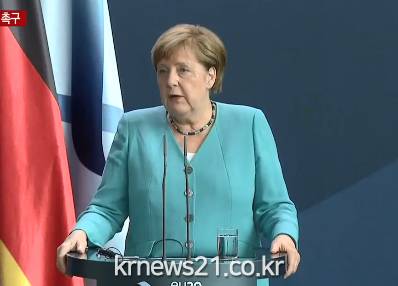 ▲ [사진출처 = YTN뉴스 캡처]그간 공식석상에서는 마스크를 착용하지 않았던 앙겔라 메르켈 독일 총리가 처음으로 공식성상에서 마스크를 착용해 주목을 받았다.