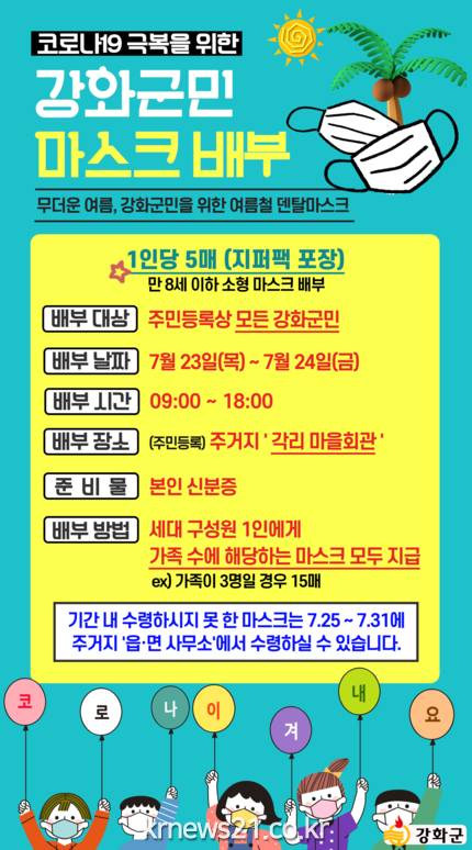 강화군은 최근 관내 해외입국자가 코로나19 양성으로 판정되는 등 지역사회에 조용한 전파가 우려됨에 따라 덴탈 마스크를 모든 군민에게 배부한다고 22일 밝혔다.