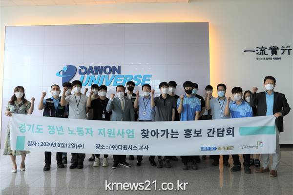 경기도 일자리재단이 12일 ‘경기도 청년 노동자 지원사업’ 참여 기업 중 하나인 ㈜다원시스를 방문해 사업 참여자, 기업 인사담당자들과 간담회를 했다.