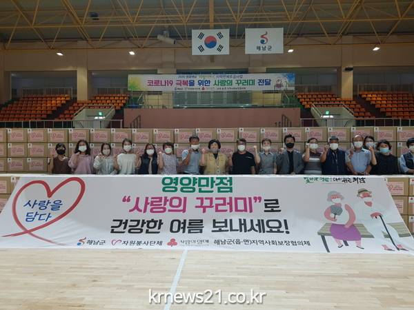 사랑의 꾸러미 물품은 해남군에서 생산한 농수산물 가공품으로 미숫가루, 고구마말랭이, 돌자반 등 폭염에 다소 부족할 수 있는 5가지 영양식으로 구성했다.