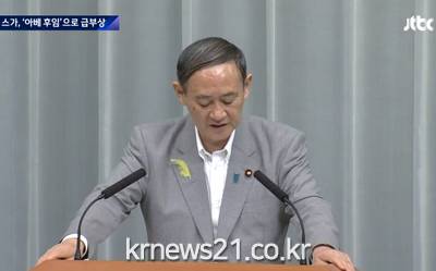 ▲ [사진출처 = JTBC 뉴스 캡처]아베 신조(安倍晋三)가 건강악화로 총리직 사임을 발표하며 그 후임자로 스가 요시히데(菅義偉) 일본 관방장관이 떠오르고 있다.