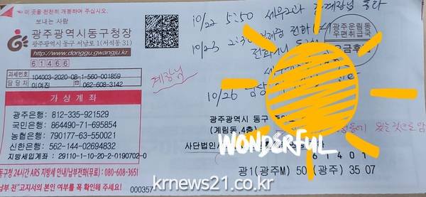 교육원 운영자는 어떤 민원인이 제대로 되어 있는 고지서를 틀리다고 전화를 하겠냐고 재차 이야기 했더니 임택 구청장 광주 동구 계장이 실무 담당자가 월요일에 나오니 다시 연락 준다고 하며 전화를 끊었다는 것이다.