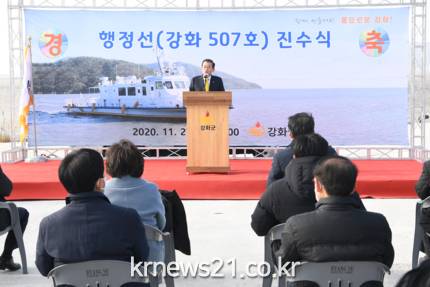 기존 관공선 강화 507호는 30톤급 선박으로 건조한 지 21년이 경과됐고 매년 많은 수리비 지출과 임무수행 시 안전성 문제가 대두됐다. 이에 군은 안정적으로 섬 지역 행정서비스를 지원하고 어업지도와 수산자원 보호를 위해 사업비 43억 원을 투입해 기존 선박을 대체하는 새로운 행정선을 건조해 이번에 진수하게 됐다.