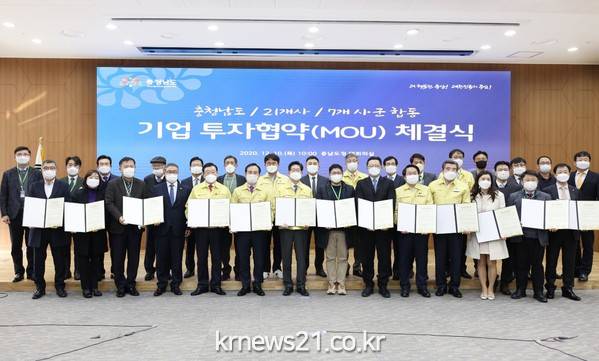 이날 협약식은 충청남도 내 7개 시군과 21개 기업이 합동 투자협약을 체결하는 자리로, 보령시에는 ㈜코엔시스가 웅천일반산업단지로 오는 2024년까지 새 둥지를 틀게 된다.