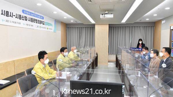 이날 협약식에는 임병택 시흥시장과 박미경 신일초등학교 교장, 이종호 은행초등학교장,