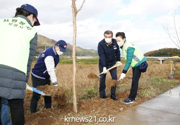 특히, 이날 행사에 사용된 나무는 ‘걷쥬’앱을 통해 기부된 나무로, 자원봉사 숲 챌린지 기간 동안 20만 보 이상 걸음수를 달성한 보령시민의 명의로 기부됐다.
