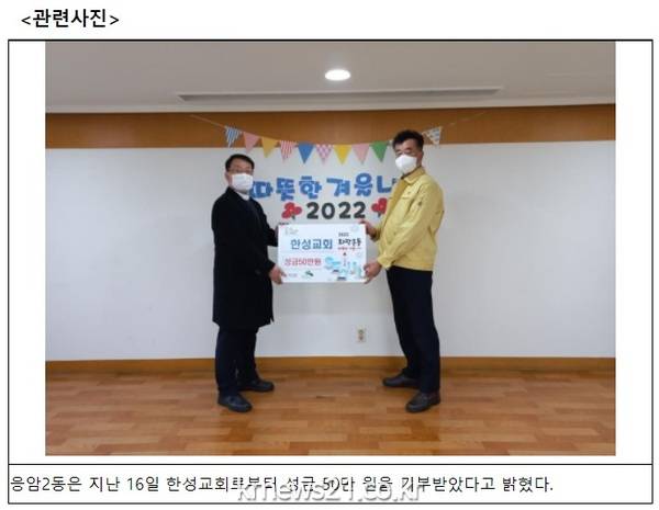 정명식 응암2동장은 “최근 코로나19 변이 바이러스로 인해 모두가 힘든 상황 속에서도 우리가 함께 어려움을 이겨낼 수 있는 힘은 나눔 실천하는 많은 분들의 따뜻한 마음이 있기 때문”이라며 “연말에 소외된 이웃에 대한 관심을 높이는 계기가 될 것”이라며 소감을 밝혔다.