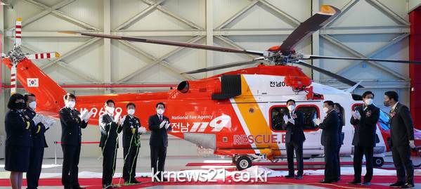 ▲ 사진=전라남도전남소방본부가 도서산간이 많은 전남지역에서 안전하게 원거리 소방활동을 펼칠 수 있는 중형급 신형 헬기를 띄운다.