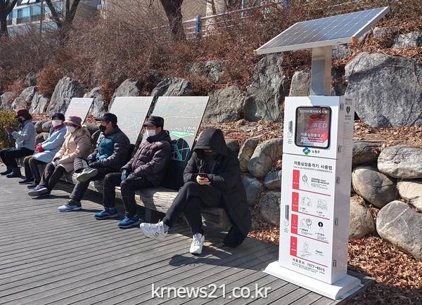 이번에 새롭게 설치한 자동심장충격기는 61대이다. 실내 15개소뿐 아니라 야외에서 발생하는 응급 상황에도 신속하게 대응할 수 있도록 구민들의 이용이 잦은 근린공원과 하천변 산책로 등 야외 46개소에도 설치했다.