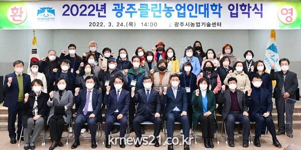 ▲ 사진=광주시광주시 농업기술센터는 24일 센터 대회의실에서 ‘2022년 광주클린농업인대학 입학식’을 개최했다.