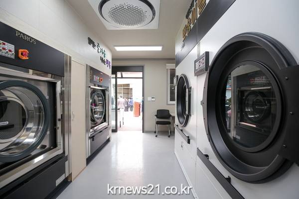 이 과정에서 세탁실의 50㎏ 용량 대형 세탁기 2대, 80㎏ 용량 대형 건조기 2대를 설치한 ㈜파로스는 운동화 세탁기를 뽀송이 빨래방에 기부해 추가 설치하기도 했다.