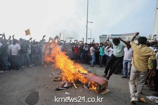 1일(현지 시각) 현지 언론인 콜롬보 가제트 등에 따르면 수천명의 시위대가 이날 콜롬보 외곽의 고타바야 라자팍사 대통령 사저 앞에서 라자팍사 대통령을 향해 “집에 가라!”는 등의 구호를 외치며 경찰과 대치하고 있다.