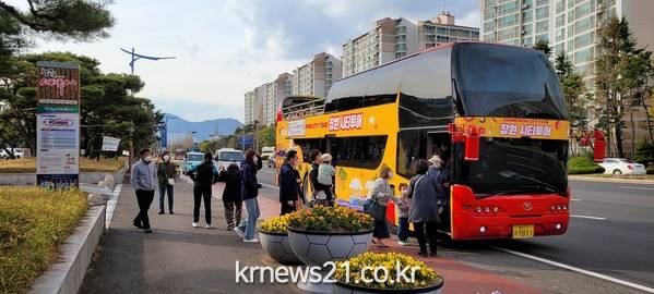 ▲ 사진=창원특례시창원특례시(시장 허성무)는 표 한 장만 구매하면 창원 주요 관광지를 종일 돌아볼 수 있는 창원시티투어버스의 인기가 날로 높아지고 있다고 15일 밝혔다.