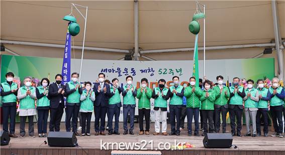새마을운동 제창 52주년을 맞아 개최된 이번 기념식은 정부거리두기 완화 지침에 맞춰 200여 명의 새마을지도자들이 한자리에 모여 그동안의 노고를 격려하는 한편, 새마을 운동의 사회적 공감대 확산을 위해 노력하기로 다짐했다.
