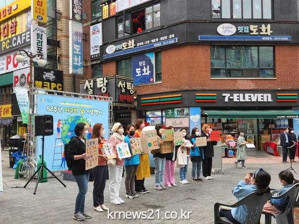 광명시는 지난 22일 철산 로데오거리 원형광장에서 열린 지구의 날 52주년 기념행사에서 2022년도 기후동아리 발대식을 진행했다.