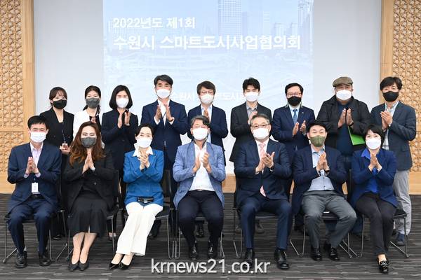 수원시 스마트도시사업협의회가 9일 시청 중회의실에서 2022년 제1회 회의를 열고, 첫발을 뗐다.