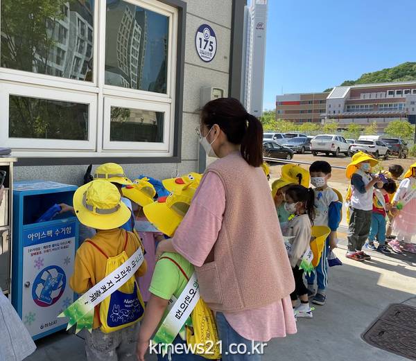 하남시 감일동은 9일 시립감일별하어린이집 원아 30여명을 초청해 일상 속 탄소중립운동을 실천하는 아이스팩 분리수거 캠페인을 했다고 밝혔다.