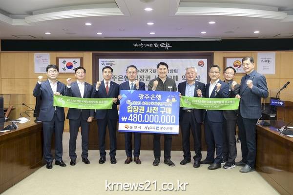 (재)순천만국제정원박람회조직위원회(이사장 노관규)가 지난달 31일 광주은행이 2023순천만국제정원박람회(이하‘2023정원박람회’) 성공개최를 위해 4억 8천만 원 상당의 입장권을 사전 구매했다고 밝혔다.