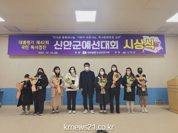 새마을문고 신안군지부(회장 이화자)는 16일 신안공설운동장 회의실에서 ‘대통령기 제42회 국민독서경진 신안군 예선대회 시상식’을 개최했다.
