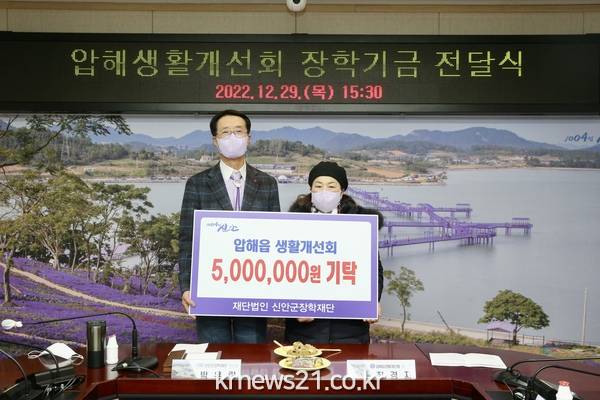 신안군 압해읍 생활개선회(회장 최경자) 임원 및 회원들은 29일 신안군청을 방문해 어려운 환경에서 학업에 정진하는 학생들을 위해 사용해 달라며 (재)신안군장학재단(이사장 박우량)에 5백만원의 장학기금을 전달했다.