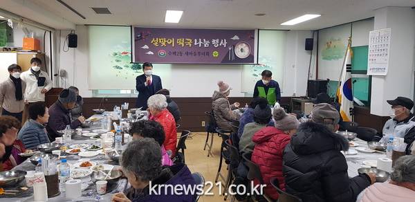 구리시(시장 백경현) 수택2동 행정복지센터는 17일 2층 회의실에서 수택2동 새마을부녀회(회장 이혜순) 주관으로 새해를 맞아 관내 홀로 생활하는 어르신 100여 명을 초청해 ‘사랑의 떡국 나눔 행사’를 개최했다.