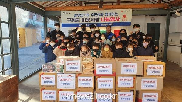 구례일무합기도는 작년에 이어 30여 명의 수련생이 작은 정성이지만 라면과 쌀 등을 십시일반으로 모아 어려운 이웃에게 나눔을 실천하고자 기부를 하였다.