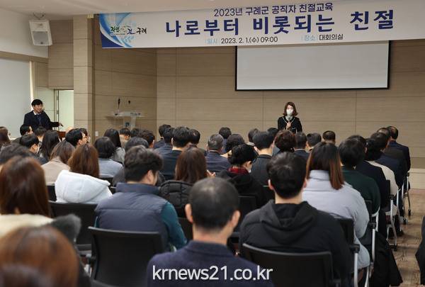 전남 구례군은 지난 2월 1일 군청 대회의실에서 소속 공직자들을 대상으로 공직자 친절교육을 실시했다.