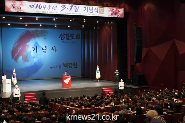구리시(시장 백경현)는 3월 1일 구리아트홀 코스모스 대극장에서 제104주년 3·1절을 맞아 일본의 식민 통치에 항거하고 독립선언서를 발표하여 한국의 독립의사를 세계만방에 알렸던 3·1절의 함성을 되새기는 기념식을 개최했다.