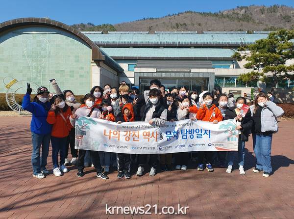 ▲ 장흥군청소년방과후아카데미, 역사문화탐방 운영장흥군청소년수련관(관장 하주자) 방과후아카데미는 지난 25일에 1회차 주말체험활동을 진행했다고 밝혔다. 이번 체험활동은 역사·문화 탐방을 주제로 강진군 일대에서 이뤄졌으며 ▲가우도 출렁다리 걷기 ▲고려청자박물관 견학 ▲강진청자축제 탐방으로 구성되어 방과후아카데미 청소년 중 참여를 희망하는 총 25명의 청소년이 함께했다.