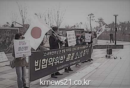 "평화의 소녀상"철거 촉구를 주장하기위하여 모습을 보인 이OO목사는 자신이 일장기의