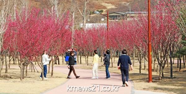 수달생태공원에 펼쳐진 2,345그루의 홍매화는 화엄사 홍매화 못지않게 상춘객의 눈을 즐겁게 해 줄 예정이다.