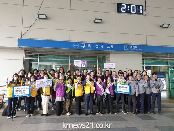 구리시(시장 백경현)는 지난 26일 구리역 광장에서‘폭력없는 행복한 구리시 만들기’라는 슬로건으로‘가정폭력·성폭력 예방 및 불법촬영 방지 캠페인’을 실시했다.