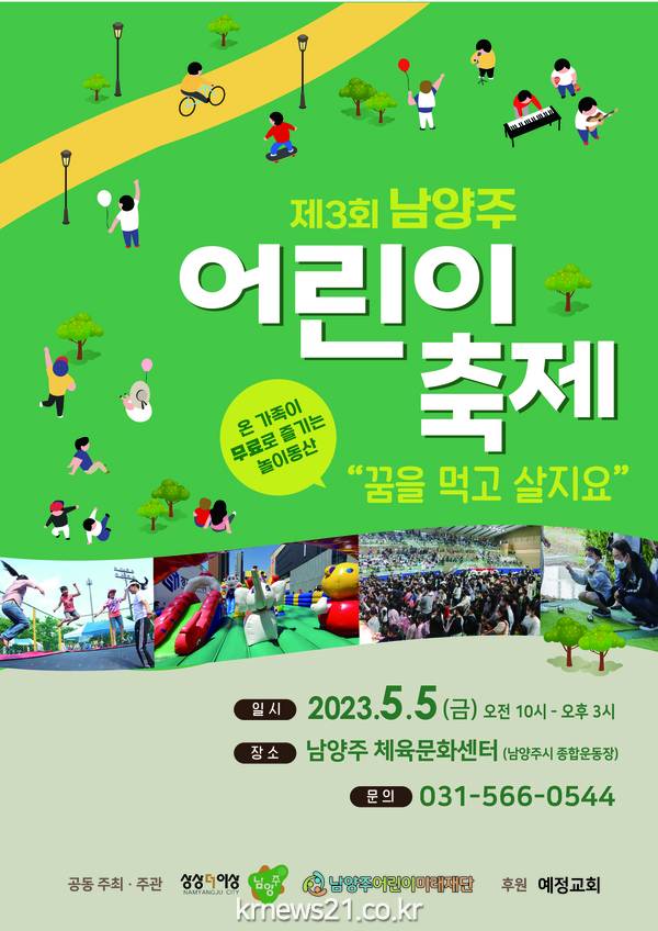 남양주시(시장 주광덕)와 남양주어린이미래재단(대표 설동욱)은 오는 5일 제101회 어린이날을 맞아 남양주체육문화센터에서 「제3회 남양주 어린이 축제」를 개최한다.