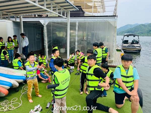 체험 행사는 사전에 학교와 협의해 어린이들이 가장 선호하는 프로그램으로 구성됐으며, 어린이들은 △수상레저(보트, 카약, 바나나보트) 체험 △인명 구조(심폐 소생술) 교육 △만들기(케이크, 소이캔들) 체험 등 다양한 프로그램에 참여하면서 즐거운 시간을 보냈다.