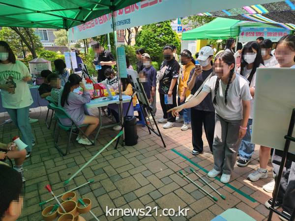 ○ 부천여성청소년재단(대표이사 양선희)이 운영하는 부천여성청소년센터에서는 지난 20일(토) 센터 앞마당에서 청소년의 날을 맞아‘해피투게더 두런’행사를 진행하였다.