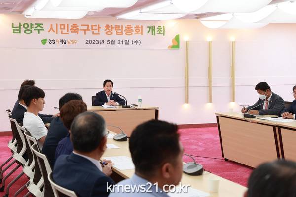 ▲ 남양주 시민축구단(남양주FC) 창립총회 개최남양주시(시장 주광덕)는 지난달 31일 시청 여유당에서 남양주 시민축구단(남양주FC)의 사단 법인 설립을 위한 창립총회를 개최했다.