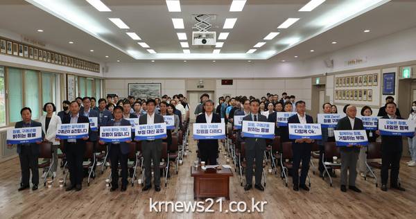 전 직원 청렴 실천 결의문을 낭독하며 청렴 실천에 대한 결연한 의지를 표명했다. 결의문에는 공무원 행동강령 준수, 금품‧향응 수수 금지, 부당한 지시 및 청탁 금지, 신뢰받는 공직사회 만들기 등에 대한 내용이 담겼다.
