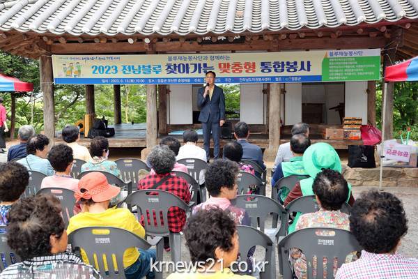 장흥군과 전남블루 재능 봉사단은 13일 장흥군 부산면 춘정마을에서 통합봉사활동을 펼쳤다고 전했다.