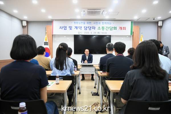 이번 소통간담회에서는 박 시장이 직접 사업 및 계약 담당 공무원들과 소통을 통해 애로사항을 청취하고 청렴 실천을 위한 직원 교육을 진행하였다.