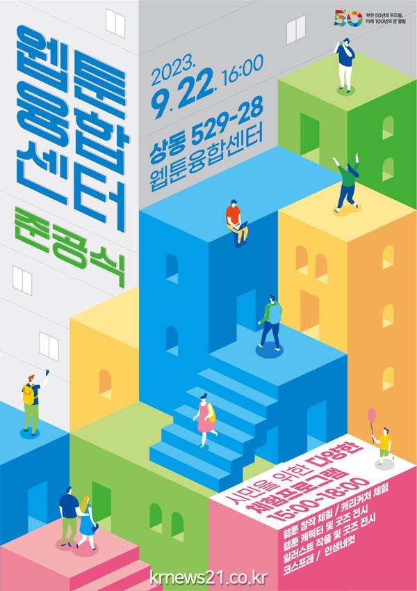 또한 웹툰융합센터 준공을 시민과 함께 축하하고 기념하기 위해 행사 당일 오후 3시부터 부대행사를 진행한다. 캐리커처, 인생네컷, 웹툰창작기업의 미디어 아트체험, 굿즈, 전시회 등 다양한 볼거리와 체험 프로그램을 마련해 시민 중심의 준공식으로 개최할 예정이다.