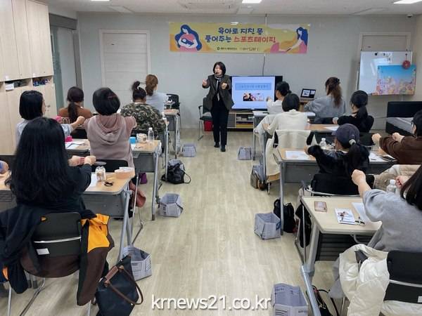 이번 교육은 제주보건소 영양플러스사업* 및 여성어린이특화사업** 대상자 중 육아에 참여하는 부모, 조부모, 가족 등 40여 명이 참여한 가운데 스포츠테이핑센터 이성미 대표의 “육아로 지친 몸 풀어주는 스포츠테이핑”을 주제로 이론교육과 실습이 진행된다.