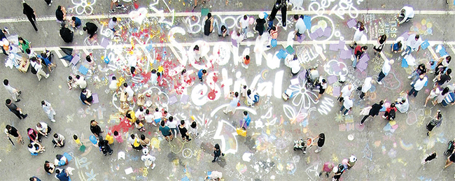 첫날인 28일 오후 1시 반부터 행사의 서막을 알리는 크라운마칭밴드의 신나는 오프닝 퍼레이드를 시작으로 거대한 아스팔트가 캔버스로 변신하는 ‘지상최대 스케치북’ 행사가 열린다.