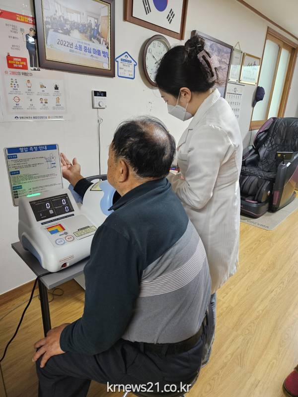 경로당으로 찾아가는 건강복지서비스는 어르신들을 대상으로 기초건강측정(혈압, 혈당) 및 개인별 건강상담, 고혈압 관련 만성질환 교육과 올바른 혈압계 사용법 등을 진행하고 있다.