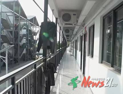 건물 안으로 들어가자 복도마다 방이 이어져 있고, 먹다 남은 컵라면, 전선 등이 책상 위에 어지럽게 널려있다.