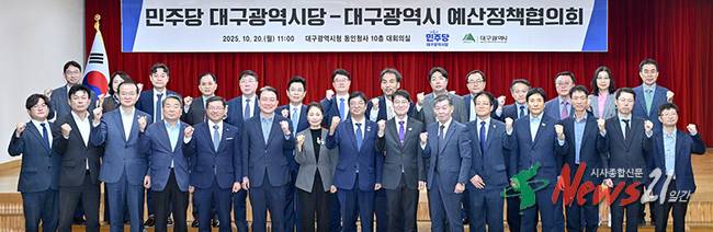 대구시에서는 김정기 대구광역시장 권한대행과 간부 공무원들이, 더불어민주당 대구시당에서는 허소 대구시당위원장을 비롯한 주요 당직자들이 참석했다.국회 예산심의를 앞두고 열린 이번 자리에서 대구시는 추가 증액이 필요한 주요 국비 사업에 대해 당 차원의 적극적인 지원과 협조를 요청했다.주요 국비 증액사업에는 ▲제조AI데이터 밸류체인 구축 ▲디지털트윈 3D프린팅 의료공동제조소 실증 등 지역 산업의 첨단기술 기반 강화를 위한 사업을 비롯해, ▲산불방지 대책 ▲지하시설물 DB 정확도 개선 등 재난 예방 및 시민 안전을 위한 사업, 그리고 ▲뮤지컬 콘텐츠 캠퍼스 아카데미 ▲대구 특화 출판산업 육성지원 등 글로벌 문화예술 도시 건설사업까지 다양한 분야가 포함됐다.허소 더불어민주당 대구시당위원장은 “대구시와 민주당이 어려운 여건과 제약 속에서도 많은 협의를 통해 충분한 예산을 반영하고, 그 예산이 대구시의 혁신과 활력에 마중물 역할을 할 수 있도록 최선을 다하자”고 말했다.김정기 대구광역시장 권한대행 행정부시장은 “정부 예산안에 대구의 미래 먹거리 산업들이 다양하게 반영됐다”며, “국회 본예산 통과 마지막까지 최선을 다해 새 정부 출범 초기에 대구시 핵심 사업들이 2026년 국비에 반드시 반영될 수 있도록 함께 협력해 나가자”고 말했다.한편, 대구시는 10월 말부터 본격 시작되는 국회 예산안 심의 기간 중 국회현장대응팀을 운영하고, 주요 쟁점사업에 대한 국회 예산질의를 지원하는 등 내년 국비 확보에 만전을 기할 방침이다.