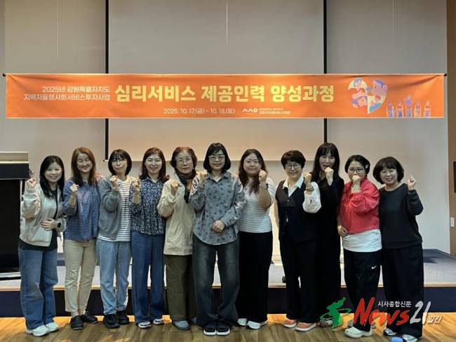□ 강원특별자치도 사회서비스원(원장 이은영) 소속 강원지역사회서비스지원단은 도내 지역자율형 사회서비스 투자사업의 심리서비스 제공인력 양성을 위한 집합교육을 9월부터 10월까지 총 4회에 걸쳐 28시간 진행하였다.
